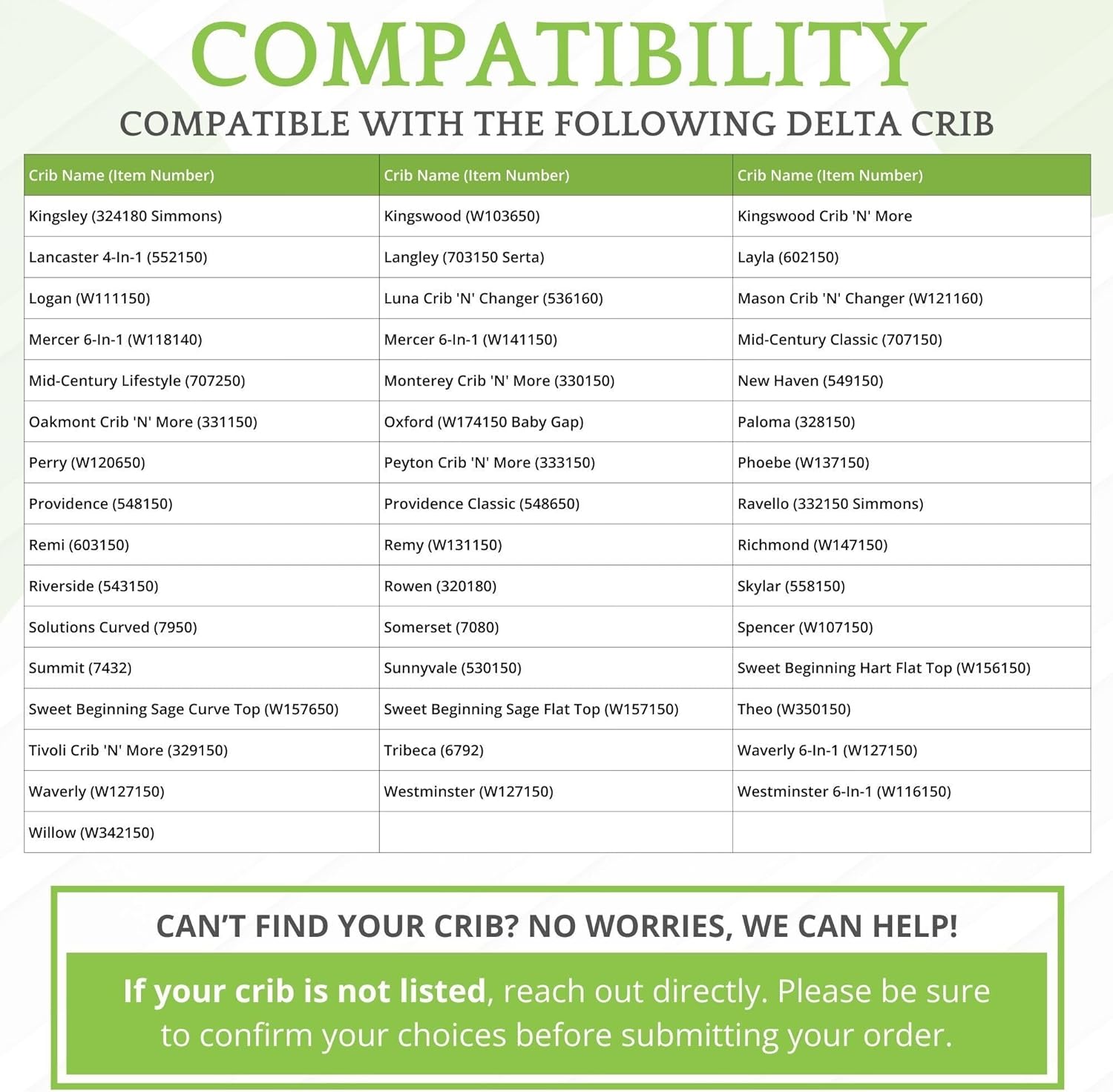 DELTA CRIB COMPATIBILITY GUIDE: